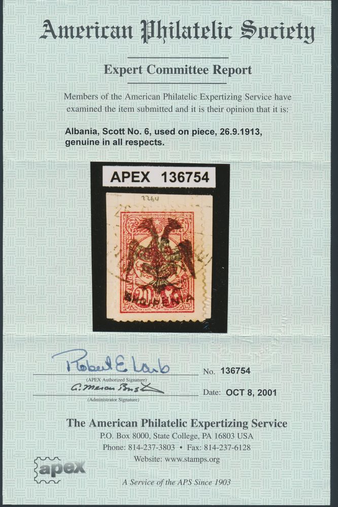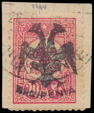 3475 0 imageN° 6 '1913 overprint double eagle 20 Pa pink' on fragment, with photo certificate (A.Ph.S), vf (Yv €700)(Image 1) (Image 2)