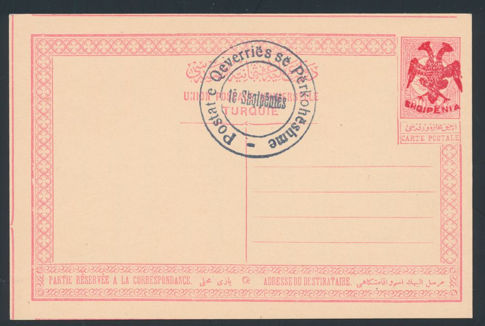 3477 image1913, postcard P 1 b '20 Pa red with red overprint, double eagle' rare, vf (Mi €2,000)(Image 1) (Image 2)