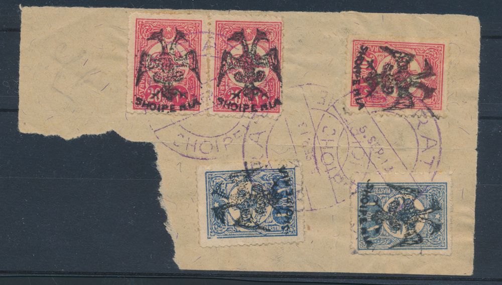 3476 0 imageN° 6 (7x) and 7 (2x) "Eagle on 10p. and 20p. on fragment cancelled 1913", minor damage, f/to be checked (Mi. €1,290)(Image 1) (All Images)