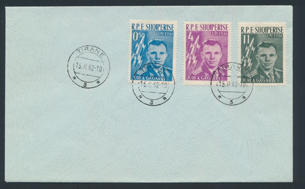 3479 image1962 N° 642/44 (Mi.) "1962 Juri Gagarin" on cover cancelled 15/2/62 (first day), vf(Image 1) (Image 2)