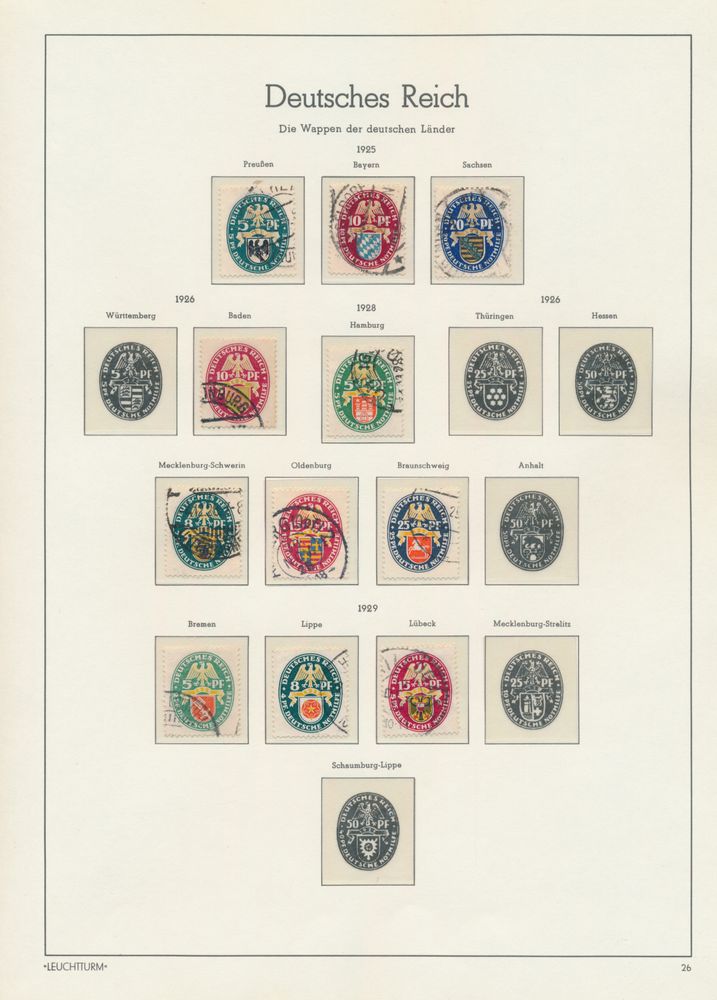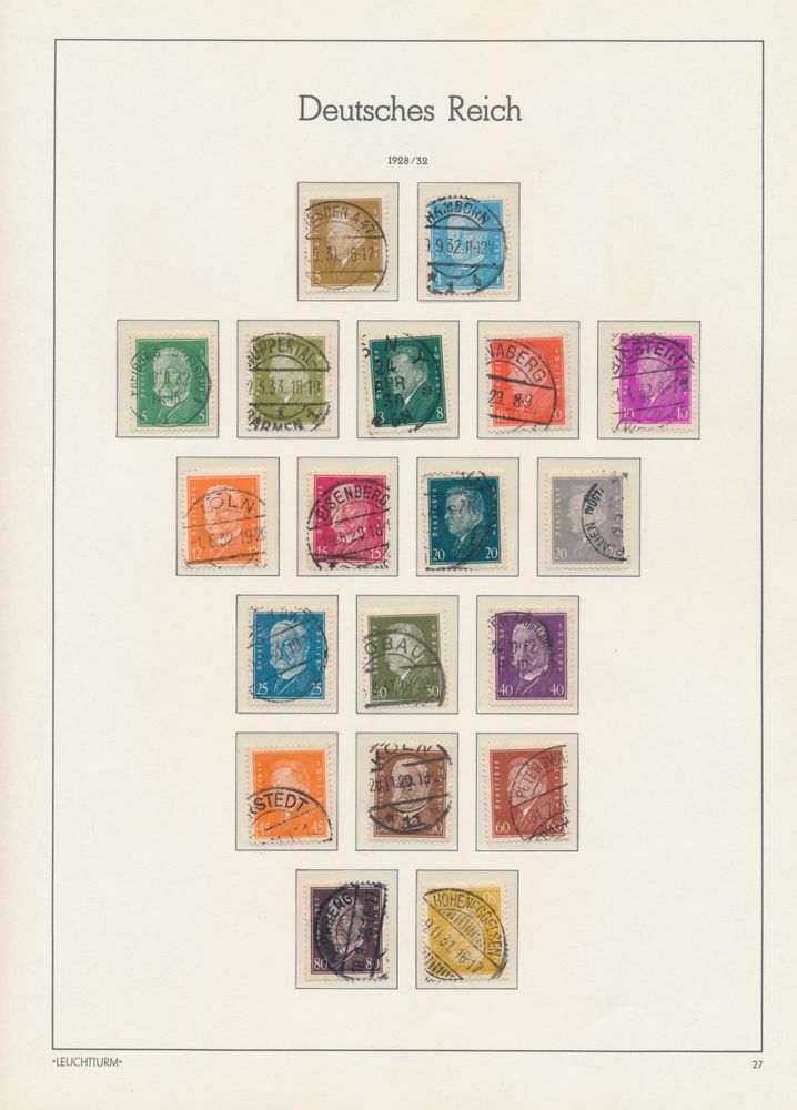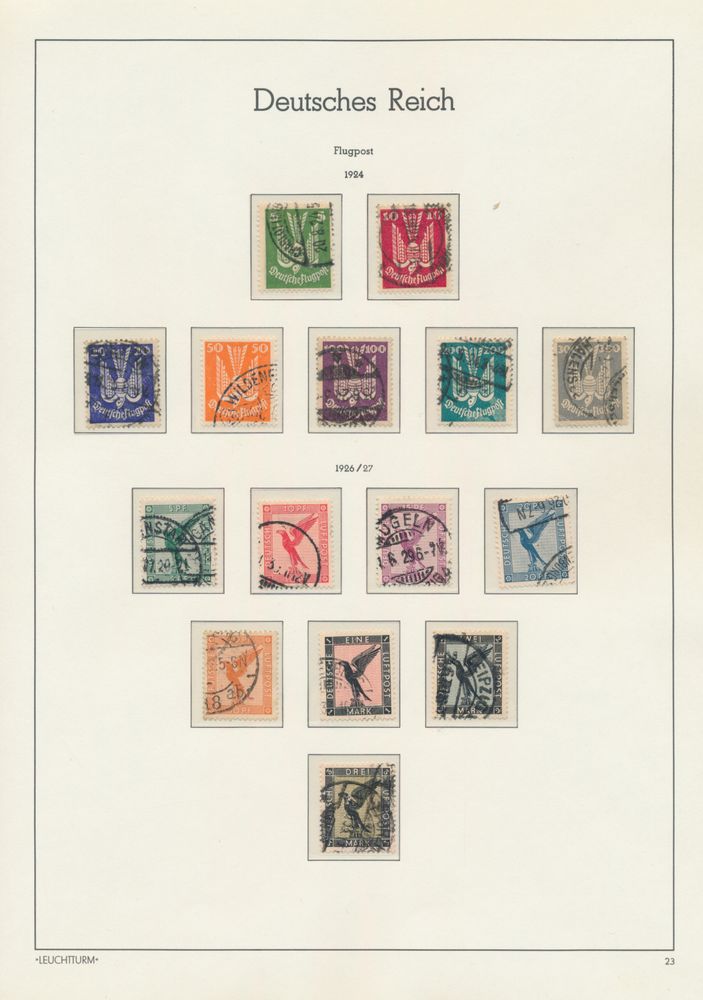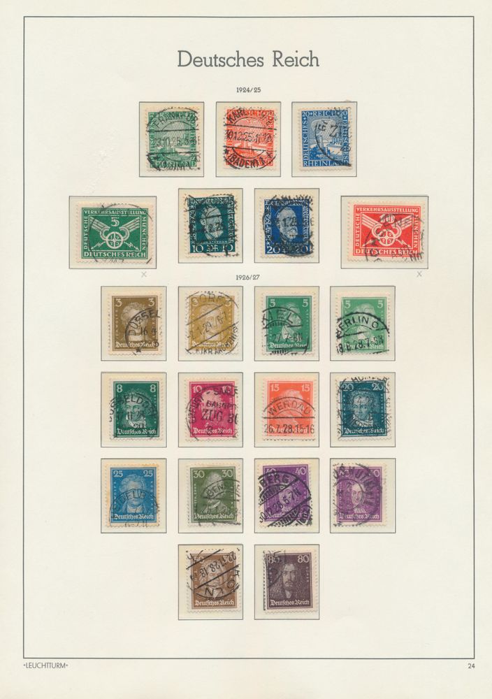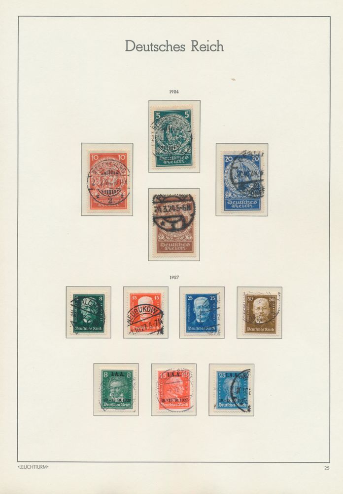 3573 og/ng/0 image1871/1945 Quasi complete collection in Davo album, mostly gest., where n° 10/11 gest., 27 gest., 66 III gest., Coat of Arms gest., 407/9 gest., Wagner gest., airmail gest., zeppelin gest. (w.o. with sign), Polarfahrt gest., Chicagofahrt gest., service, BL 1 *, BL 2 *, BL 3 gest., vf/f/to be checked.(Image 1) (Image 2) (Image 3) (Image 4)
