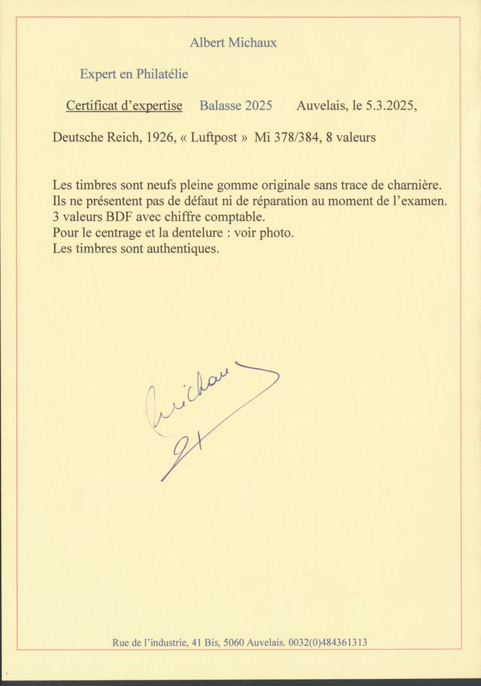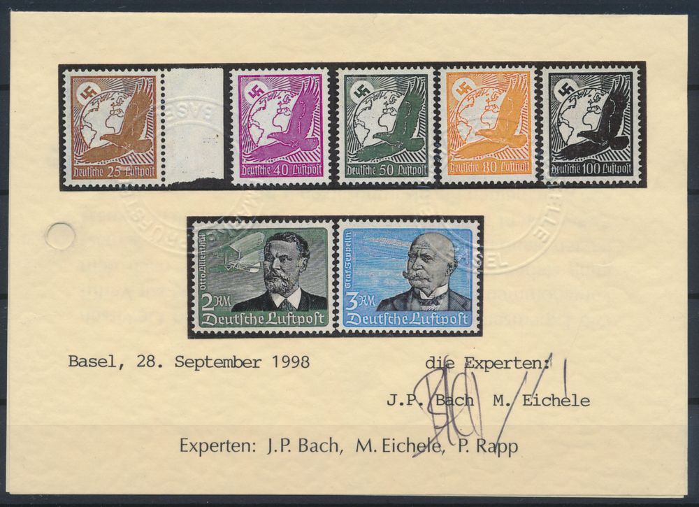 3562 0 imageN° 378/84 '1926 Adler' various values with margin, with photo certificate, vf (Mi €1,200)(Image 1) (Image 2) (Image 3)
