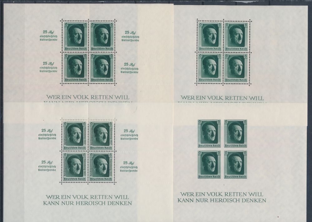 3570 nh imageBL 7/9 and 11 '1937 Hitler' the 4 souvenir sheets, vf (Mi € 965)(Image 1) (All Images)