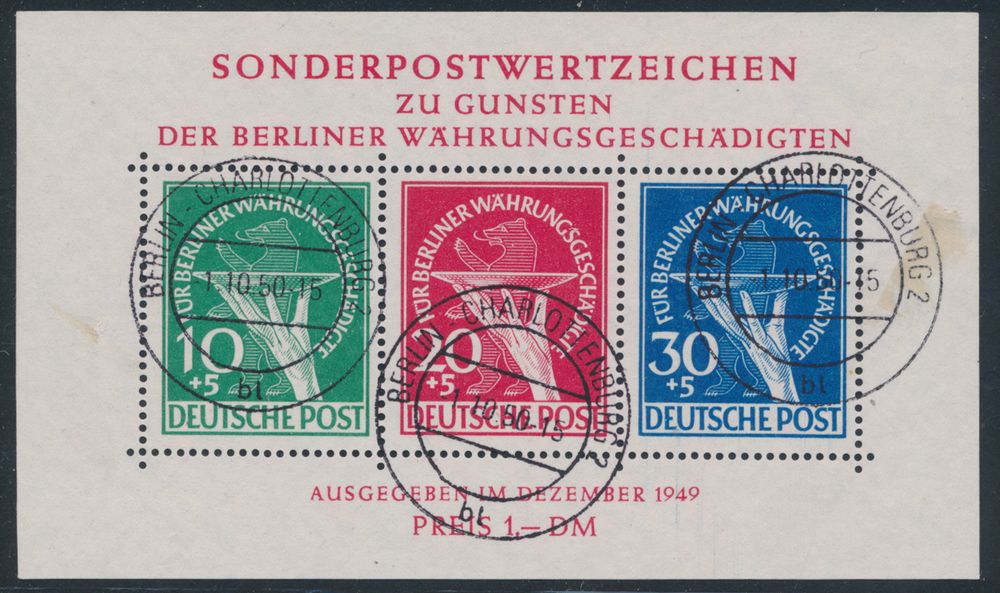 3605 0 imageBF 1 "1949 Währungsgeschadigten" 2 small hinge residue on front, f/to be checked (Mi €2,800)(Image 1) (All Images)