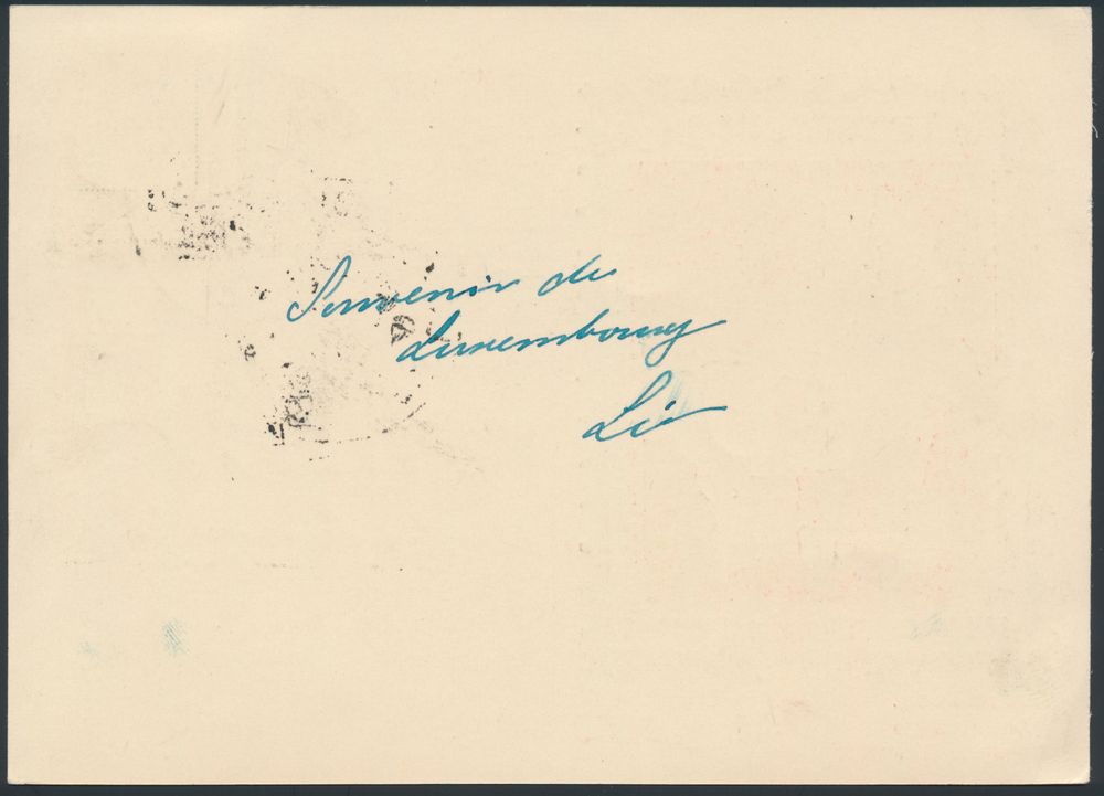 3620 PWST image1941 German postcard, issued in honour of the "1941 Tag der Briefmarke", Luxembourg, numbered N° 2499, nice cancellation, refranked with German occupation stamp n° 4, overprint "Luxembourg", dated 12 January 1941, to Uccle (Bruxelles), vf(Image 1) (Image 2)