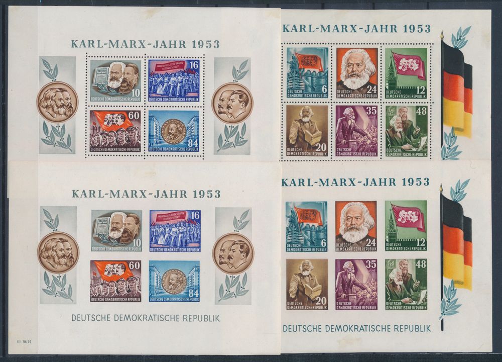 3610 nh imageBL 8AB and 9 AB "1953 - Karl Marx perforated and imperforate", vf (Mi. €400)(Image 1) (All Images)