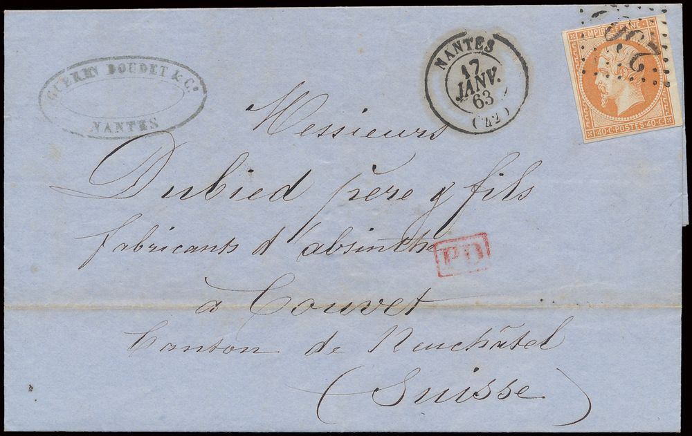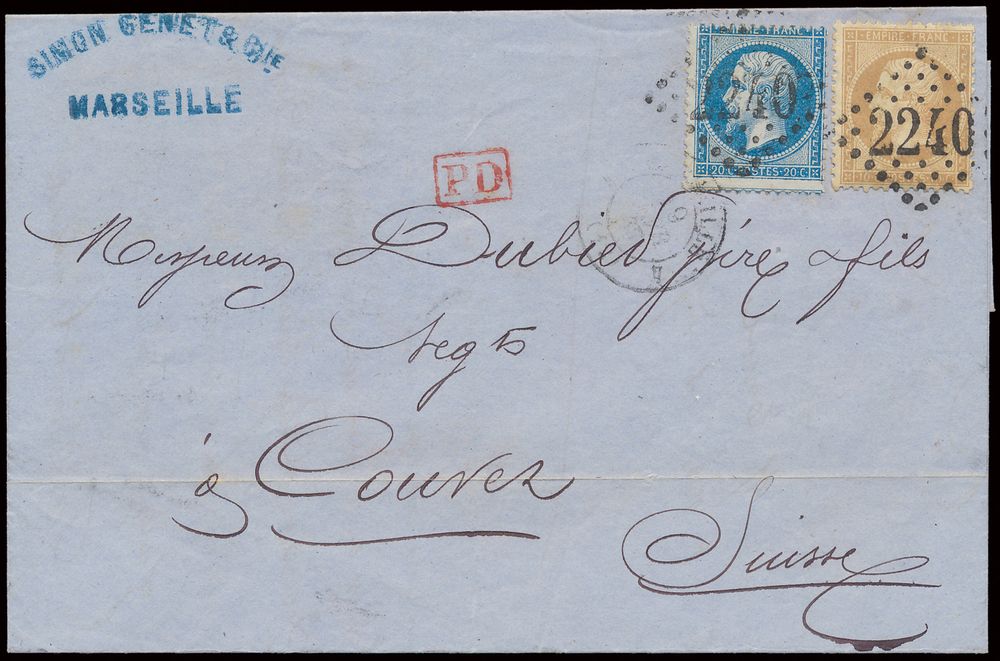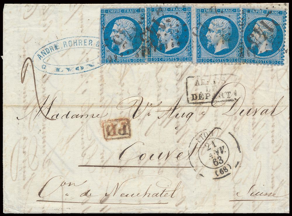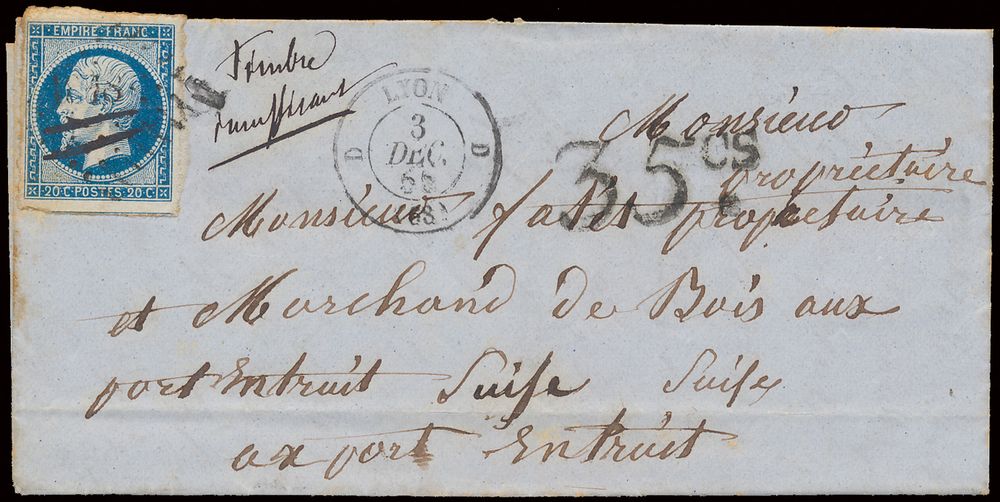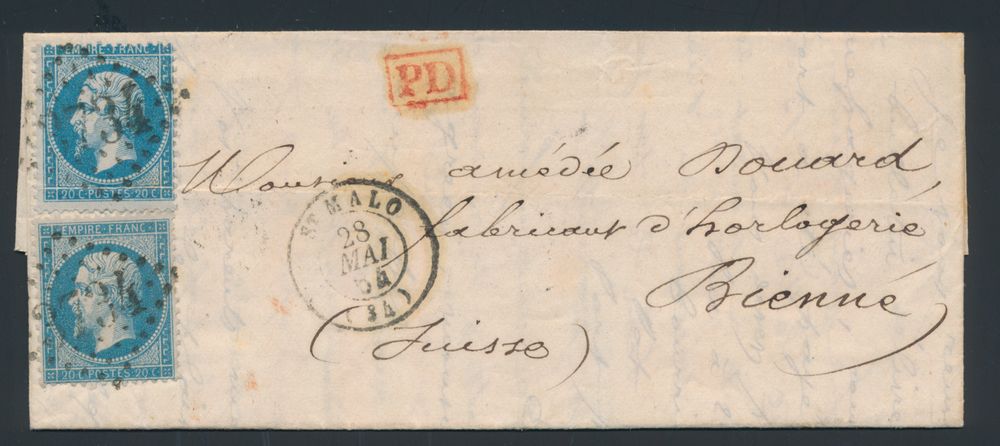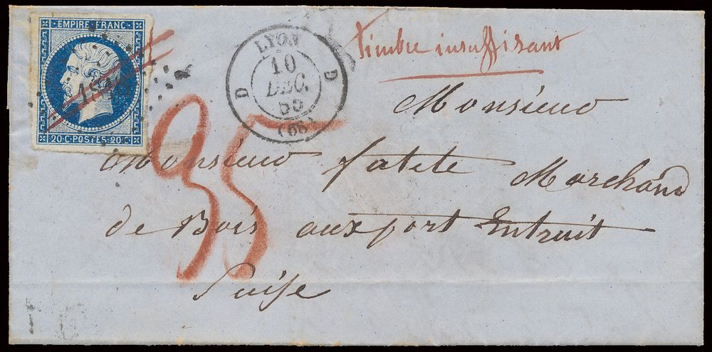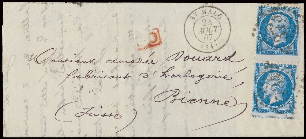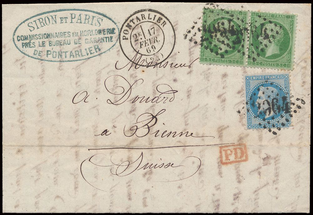 combination of Napoleon III perforated issue and sent to Switzerland (Bienne, Couvet and Bâle), vf(Image 1)