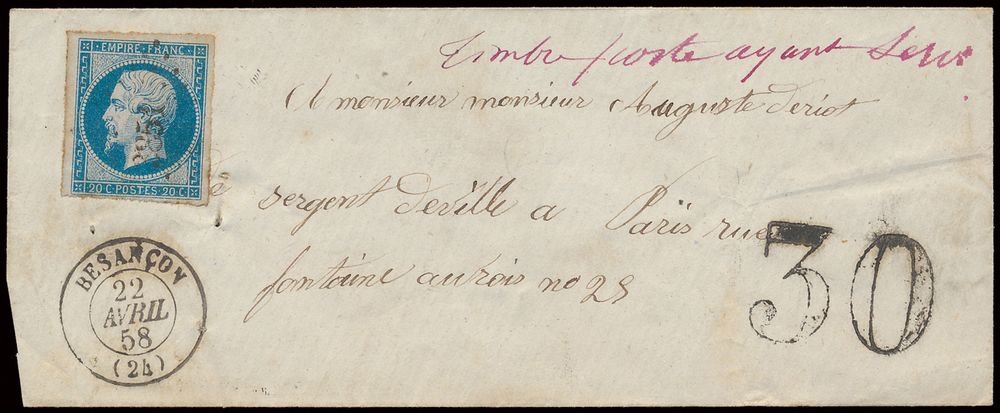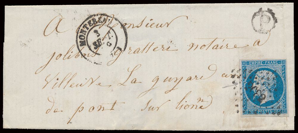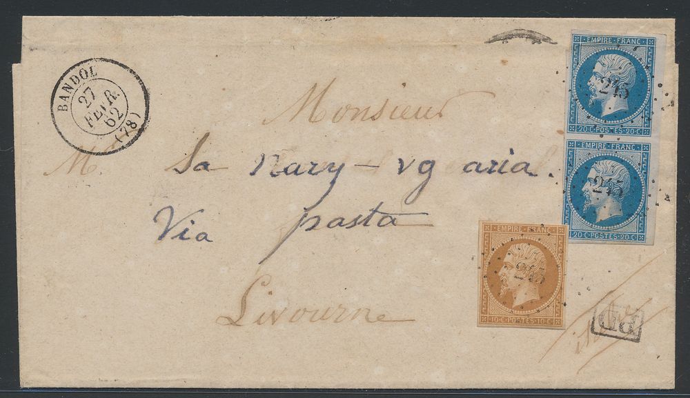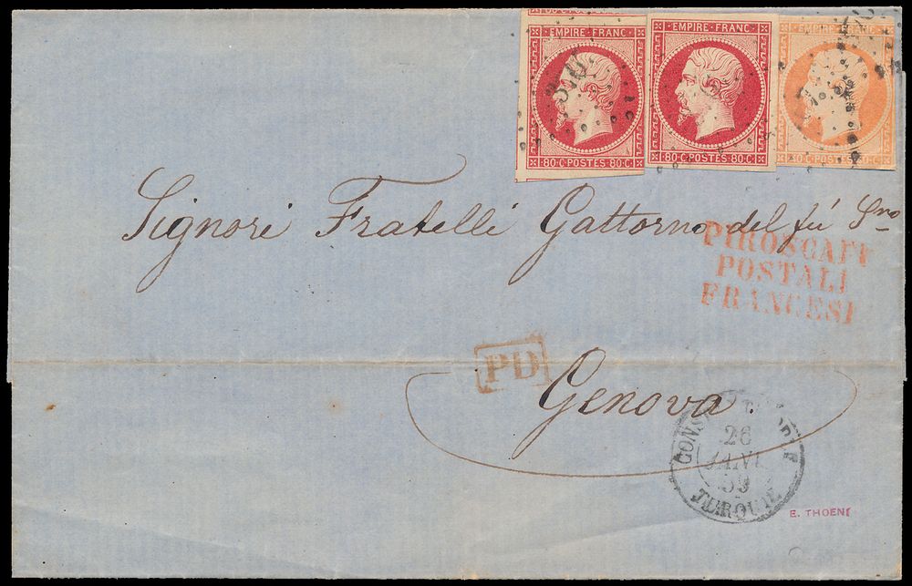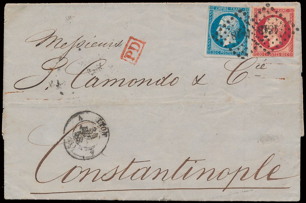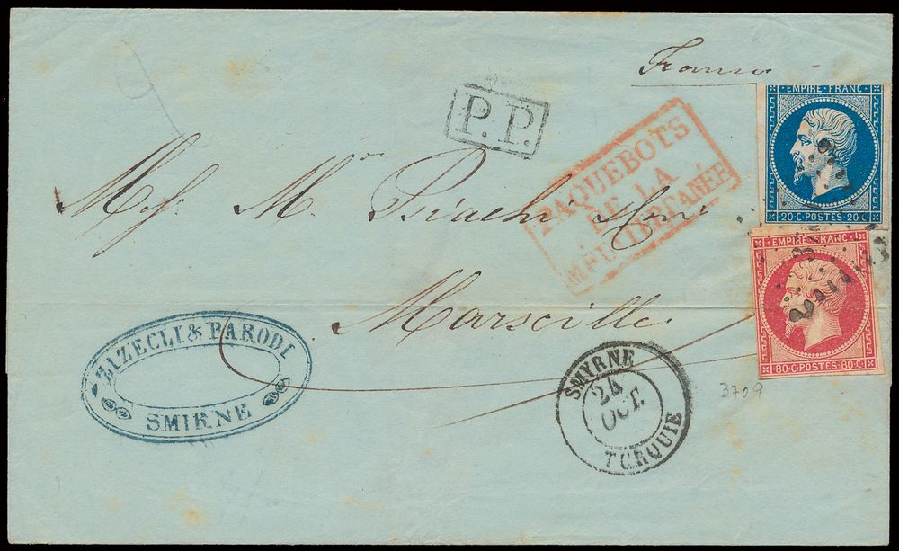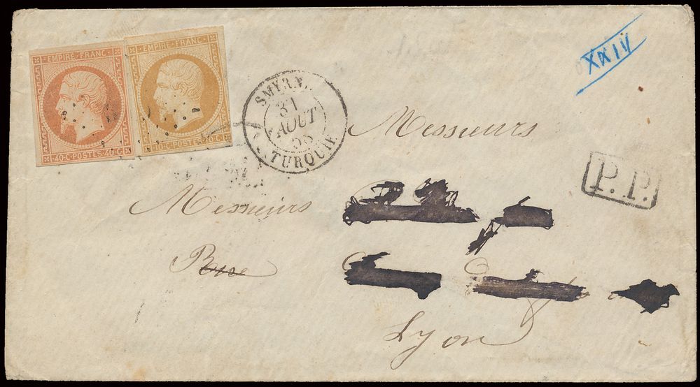 Napoleon III imperforate issue in inland rates wo. a letter from Smyrne Turquie with "paquebots de la mediterranée" cancelled on the letter, vf/f/to be checked(Image 1)
