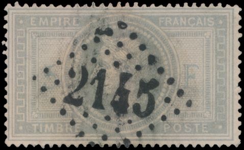 1863 N° 14B + 22 Empire "20c. blue" Type II perforated and
