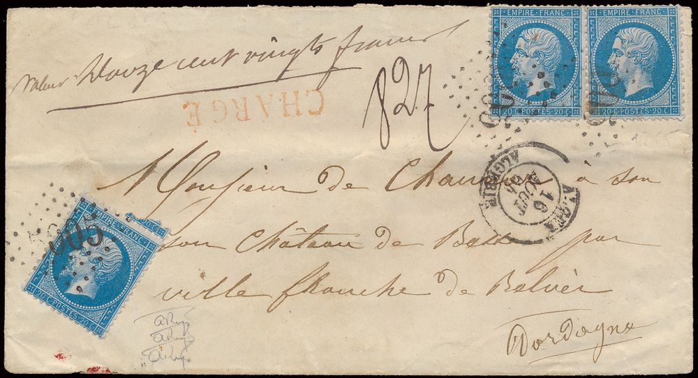 1864/1866 Accumulation of 4 "CHARGÉ" letters franked with