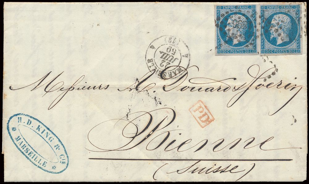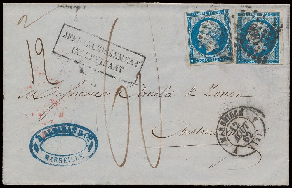wo. Switzerland, Constantinople, England, Netherlands and Austria and various combinations and all franked with Napoleon III imperforate (wide margin) issue, vf(Image 1)