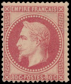 N° 32 "1867 - Napoléon Lauré - 80c. rose", sign Brun, vf (Yv.
