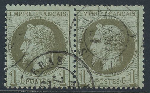 N° 25 Lauré "1c. bronze olive", accumulation of 26 stamps wo.