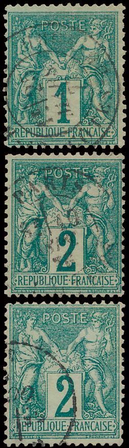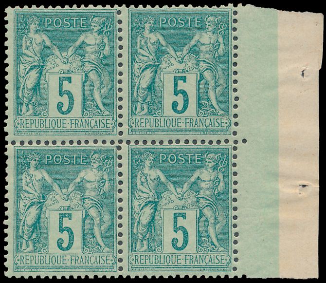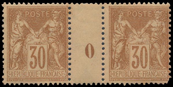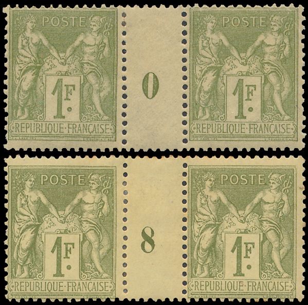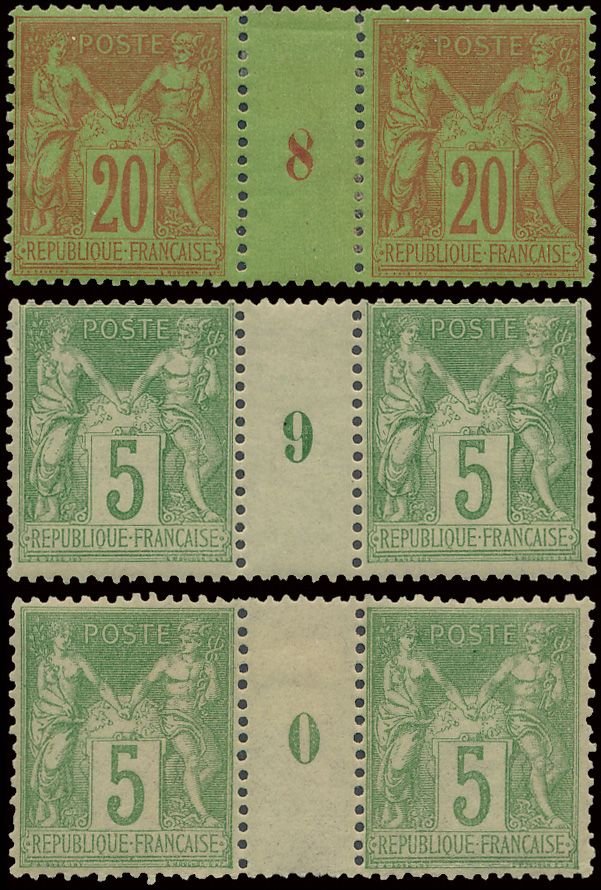 3717 nh/og imageN° 80, 96 and 102 Accumulation of 4 pairs with millésime (Total 8 stamps), n° 80 "30c. brown" with millésime "0" (vf/f), n° 96 "20c. brick red on green" with millésime "8", n° 102 "5c. yellow-green" with millésime "9" ** and n° 102 "5c. yellow-green" with millésime "0" **, vf/f (Yv. €775)(Image 1) (Image 2)