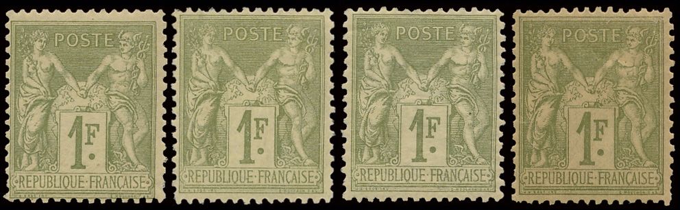 3719 og imageN° 82 "1fr. light olive" type II, accumulation of 4 loose stamps and 2 pairs with millésime "8" and "0", beautiful lot, also some stamps with nice centring and fresh, vf/f (Yv. €1,925)(Image 1) (Image 2)