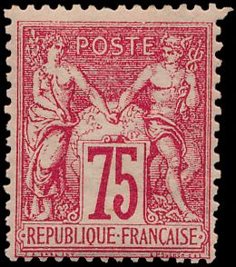 3712 og imageN° 71 "75c. carmine" Type I unused with full original gum and very light hinge remainder, very intense shade and exceptionally fresh splendour ex., vf (Yv. €1,400)(Image 1) (All Images)