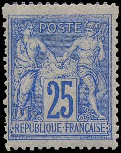 3715 og imageN° 78 "25c. ultramarine" Type II with full original gum with extremely light hinge remainder, almost **, very nice curiosity 'pushed upwards perfs' very good, rare and beautiful, vf (Yv. ++€650)(Image 1) (All Images)