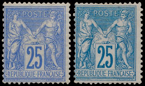 3716 og imageN° 78/79 "25c. ultramarine" type II (vf) and "25c. blue" type II, stamp with some irregular perfs on left side, vf/f (Yv. €1,400)(Image 1) (All Images)
