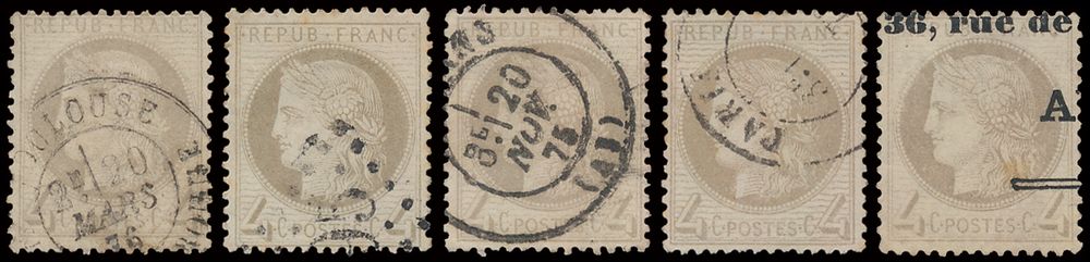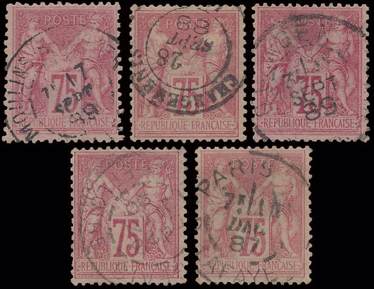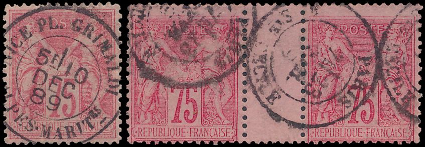 3718 0 imageN° 81 "75c. pink" Type II, accumulation of 8 stamps cancelled wo. gutter nice cancellations "NICE P.L. GRIMALDI", "chargement", Paris, some with very nice centring, vf/to be checked (Yv. €1,225)(Image 1) (Image 2)