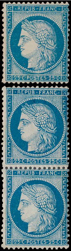 3709 nh/og imageN° 60C "25c. blue" type III in vertical pair + 1 loose stamp, lower stamp of pair is mint, vf (Yv. ++€630)(Image 1) (All Images)