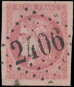 3704 0 imageN° 48d "40c. blood red" very wide margins and light central cancel G.C.-802 of Celles-sur-Belle, vf (Yv. €1,000)(Image 1) (All Images)