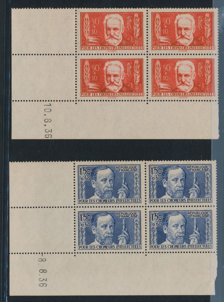 N° 330/33 "Intellectuels 1936", set in block of four stamps