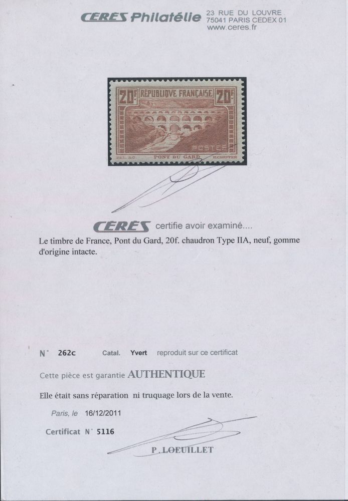 N° 262c "1931 Pont du Gard 20fr.", Ceres certificate, vf (Yv.