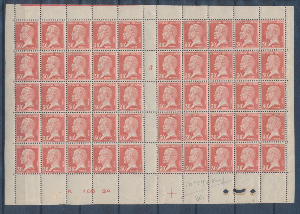 N° 173 (50x) Pasteur "30c. rouge" in full sheet of 50 stamps