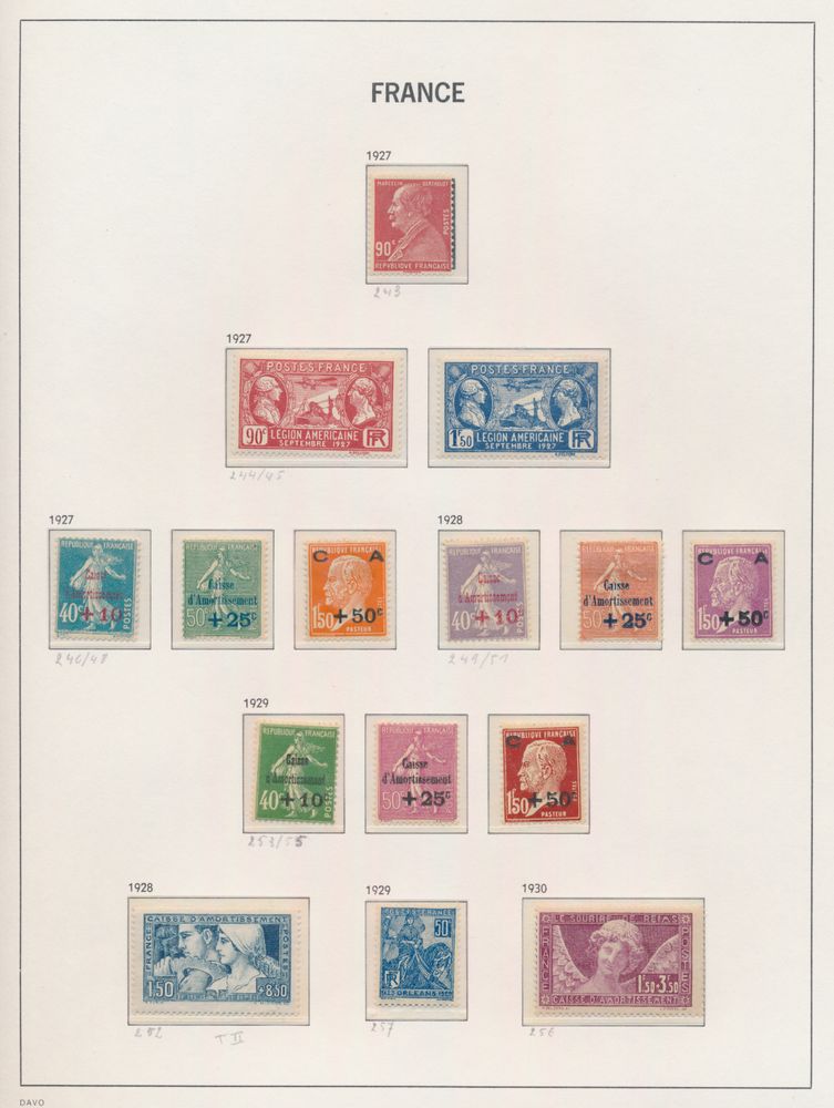 3808 nh/og/0 image1849/1971, collection in Davo album, including N° 5, 6, 33 (splendid stamp), Caisse d' Amortissement, Pexip stamp from souvenir sheet **, Samothrace **, Ader **, famous men complete (note : many clamp strips loose in album), vf/f.(Image 1) (Image 2) (Image 3) (Image 4) (Image 5) (Image 6) (Image 7)