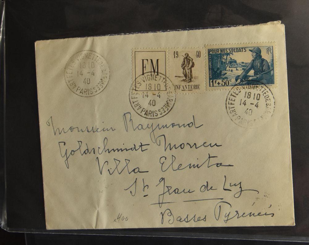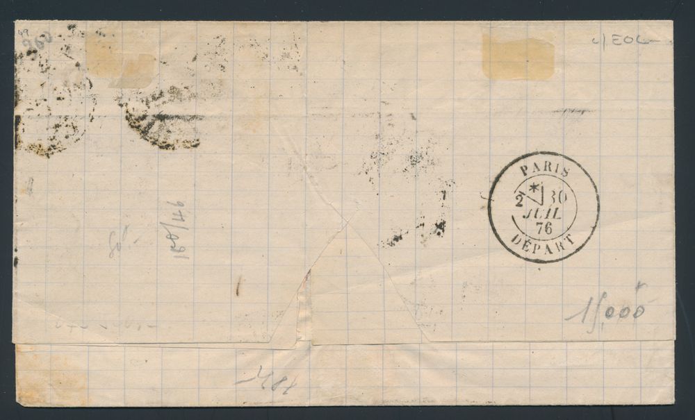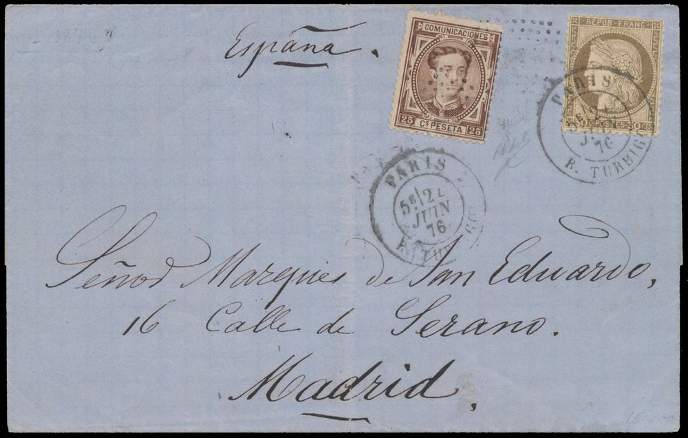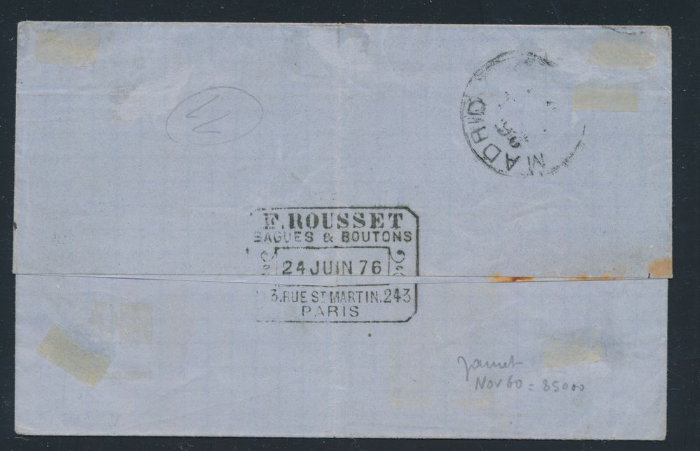3856 image1876 Letter from Paris to Madrid with mixed franking of French and Spanish stamp, letter vertically folded (not through stamps), extremely rare, vf(Image 1) (Image 2)