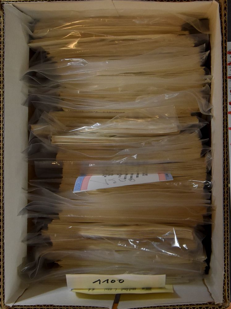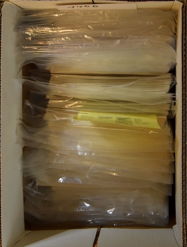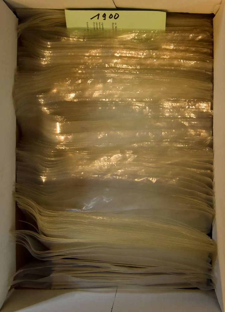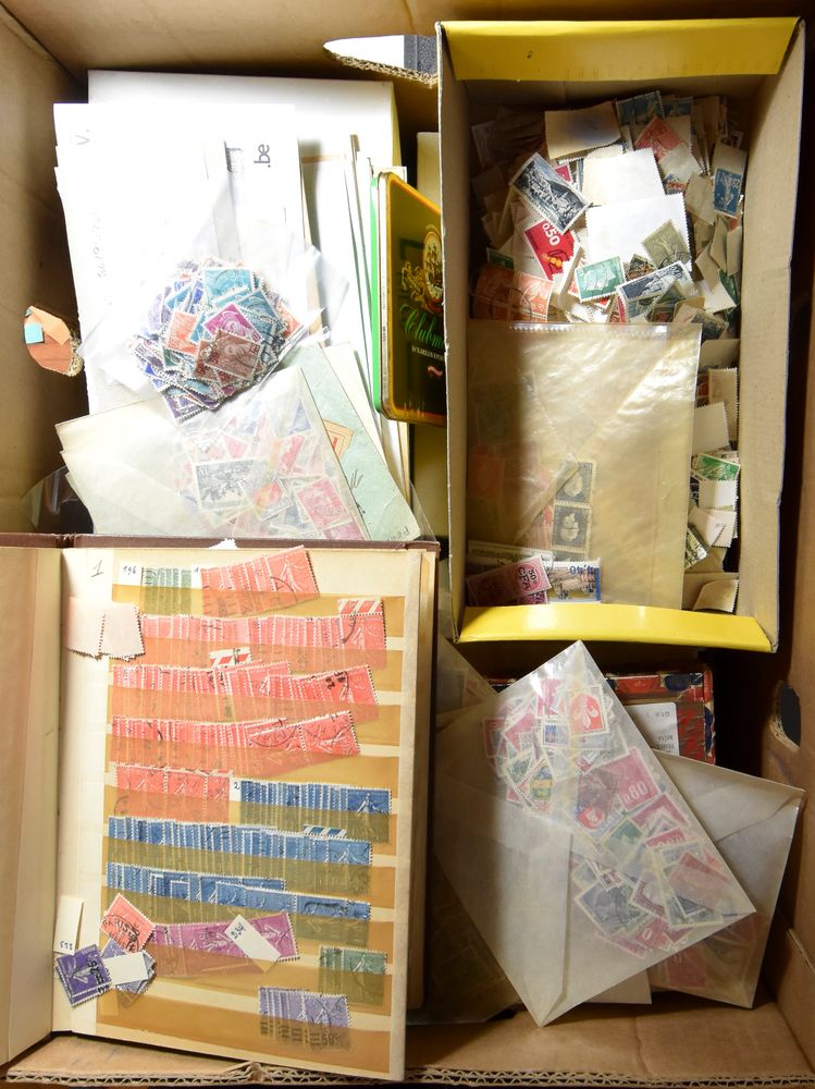 3848 0 imageBanana box filled with paper-free, to be checked. stamps, mostly sorted by stamp(Image 1) (All Images)