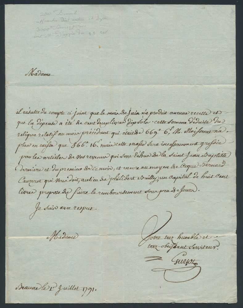 3849 image1791 French forerunner, from Beaune, dated 1 July 1791, to Saint Aubin (Switzerland), vf(Image 1) (Image 2)