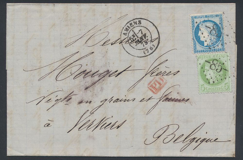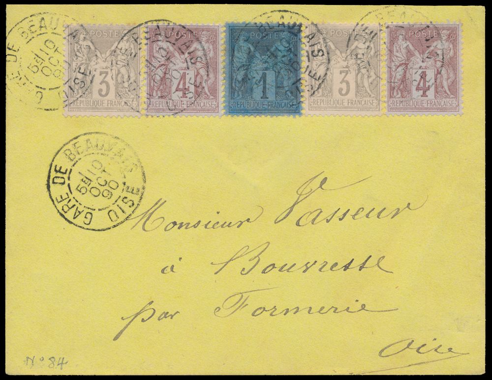 3858 image1890, attractive letter from Beauvais to Formerie, with 5 stamps type Sage including 1c resembling Bleu de Prusse, vf.(Image 1) (Image 2)