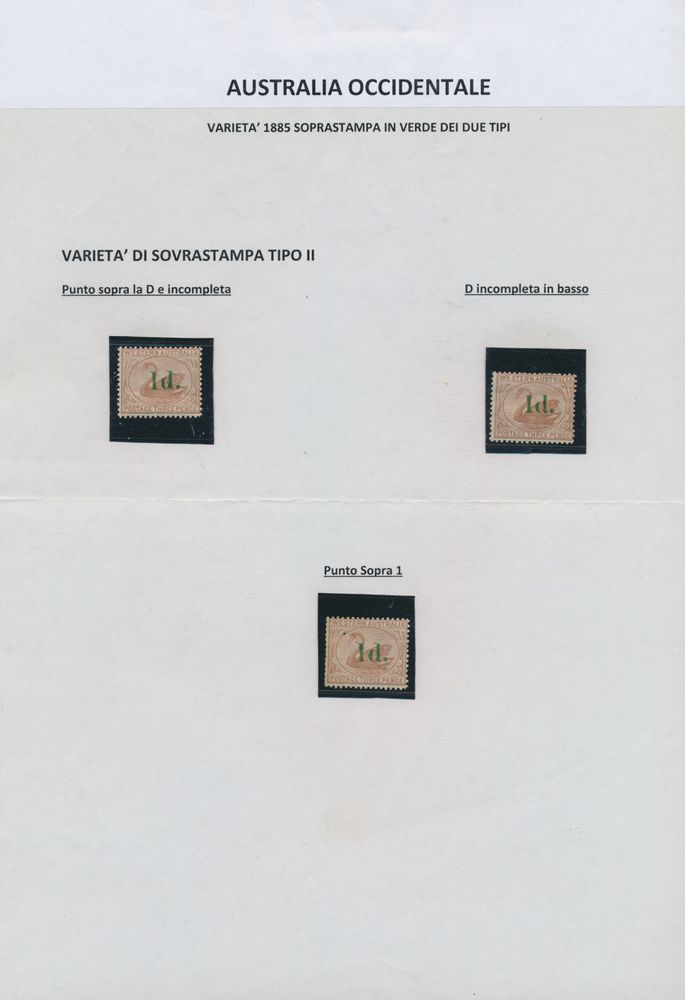 3998 og/ng/0 imageWestern Australia, n° 91/92 '1885 - 1d. on 3d. pale brown', 10 stamps with imprint varieties, S.G. catalogue value for the normal stamps = £1,200, for specialist, rarely offered, vf/f/to be checked(Image 1) (Image 2)