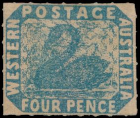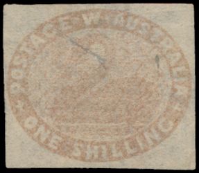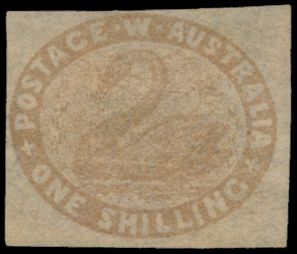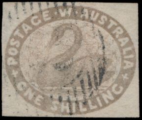 3984 0 imageWestern Australia n° 4b "1855 - one shilling grey-brown", vf (S.G. £400)(Image 1) (All Images)