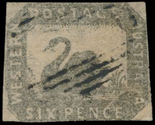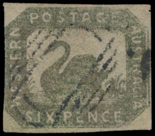 3990 0 imageWestern Australia, n° 19 "1859 - six pence grey-black", vf (S.G. £550)(Image 1) (All Images)