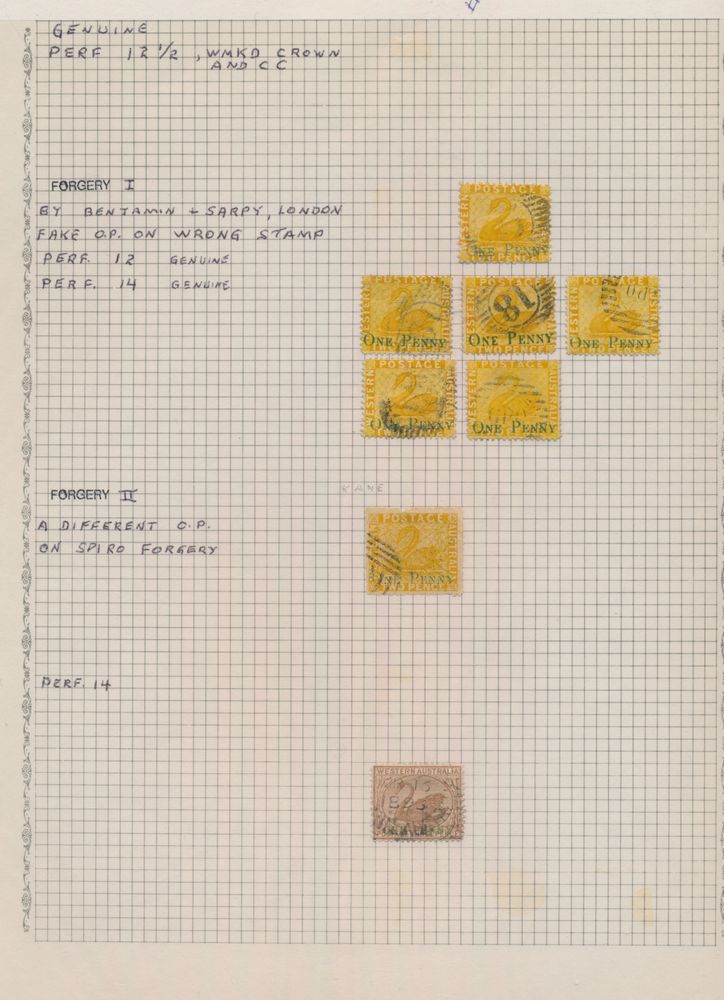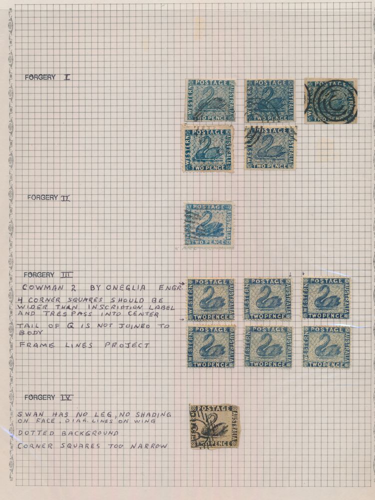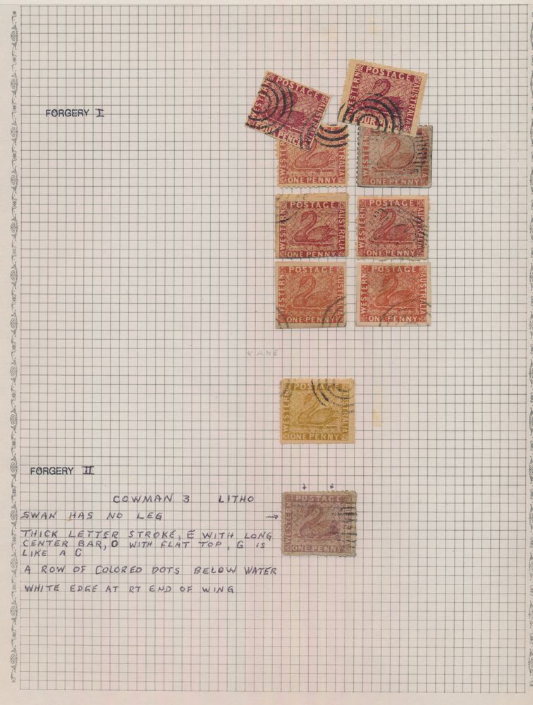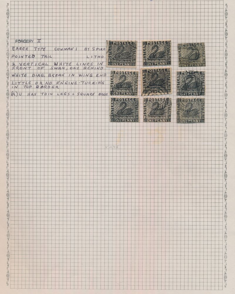 3999 ng/0 imageWestern Australia, very interesting reference collection v.a. one penny black (9x) of various forgeries with descriptions including Spiro, bargain opportunity for specialist, to be checked(Image 1) (Image 2) (Image 3) (Image 4) (Image 5) (Image 6)