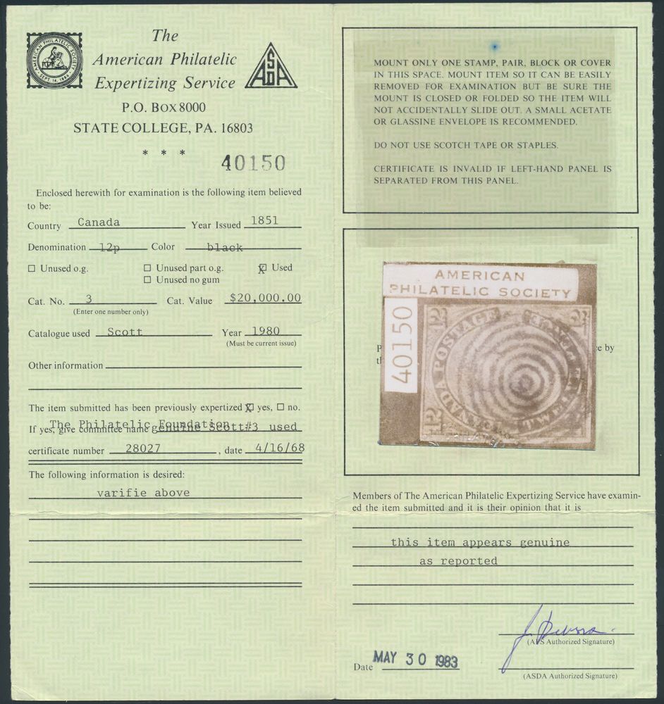 4014 0 imageN° 4 '1851, 12 pence black laid paper' fully margined (right close), with photo certificate- EXTREMELY rare stamp, vf - see photo cover(Image 1) (Image 2)