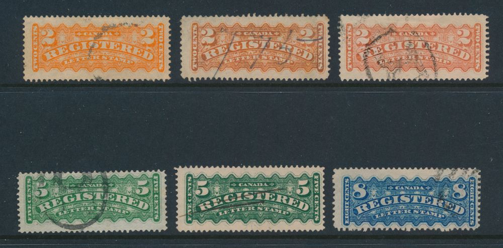 4028 0 image1875/1889 accumulation of 6 Registration stamps, various shades, vf (SG £ +300)(Image 1) (All Images)