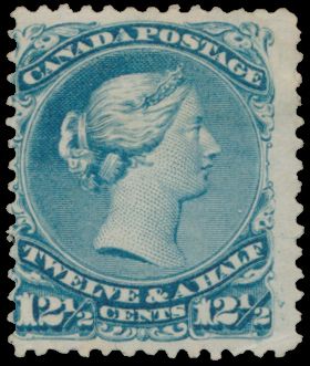 4023 og imageN° 60 '1868 Large Queen 12 1/2 cents blue' tiny thinned spot at hinge rest, f (SG £950)(Image 1) (All Images)