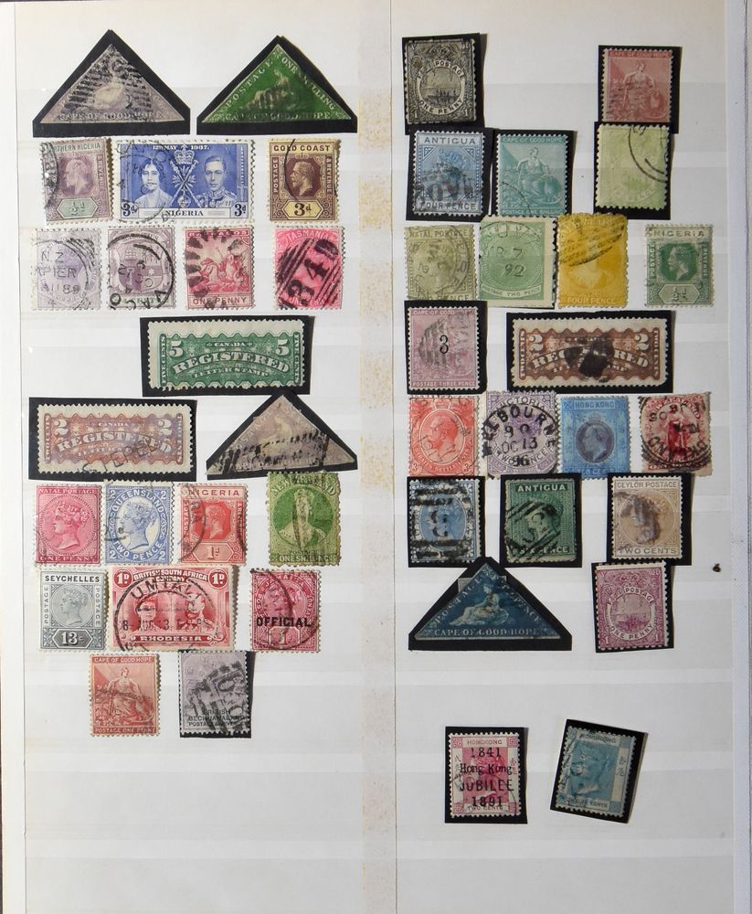4211 nh image100s of stamps in stockbook and some penalty postage Jersey, stamps mostly classic including Cape triangles, Hong Kong, ... vf/f/to be checked.(Image 1) (Image 2) (Image 3) (Image 4)