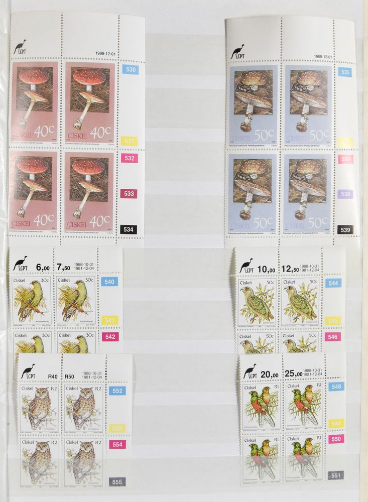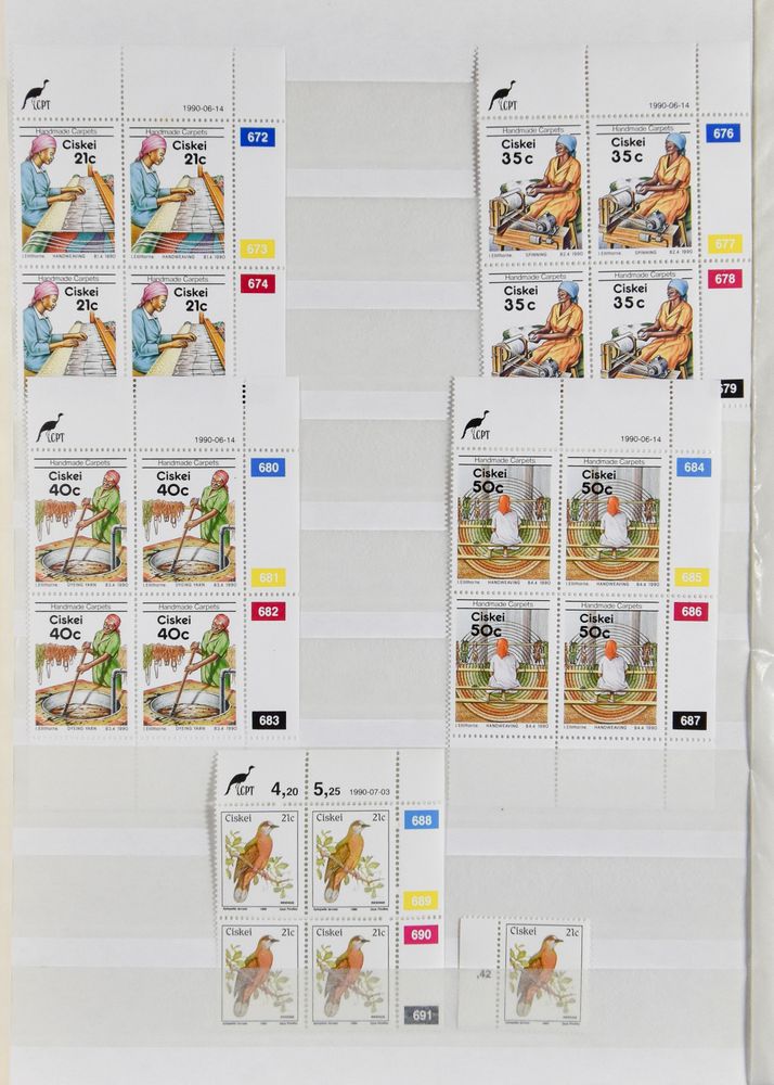 4208 nh imageSouth Africa, home countries, stock in 2 stockbooks including book of Ciskei with margins and book of Ciskei, Venda and Transkei, very much in blocks of four, vf(Image 1) (Image 2) (Image 3) (Image 4) (Image 5) (Image 6) (Image 7) (Image 8)