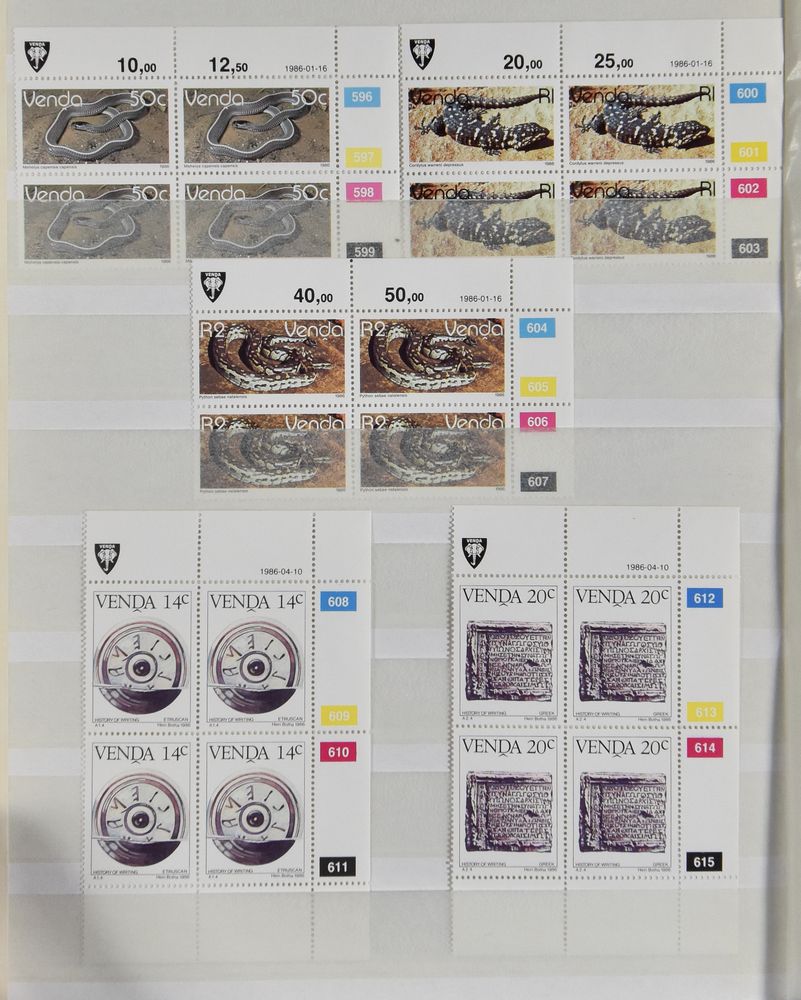4207 nh imageSouth Africa, home countries, stock of Venda and Transkei in 3 stockbooks, almost all with margin or in corner blocks of 4, vf(Image 1) (Image 2) (Image 3) (Image 4) (Image 5)