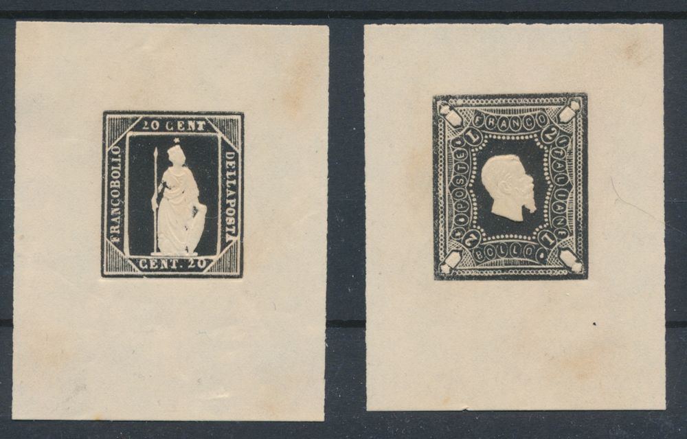4235 image1864 (?) 2 proofs in black of Italia guerriera and Vittorio Emmanuele II,with stains, f/to be checked.(Image 1) (All Images)