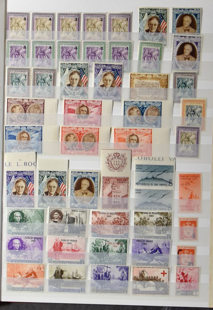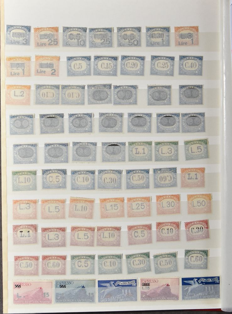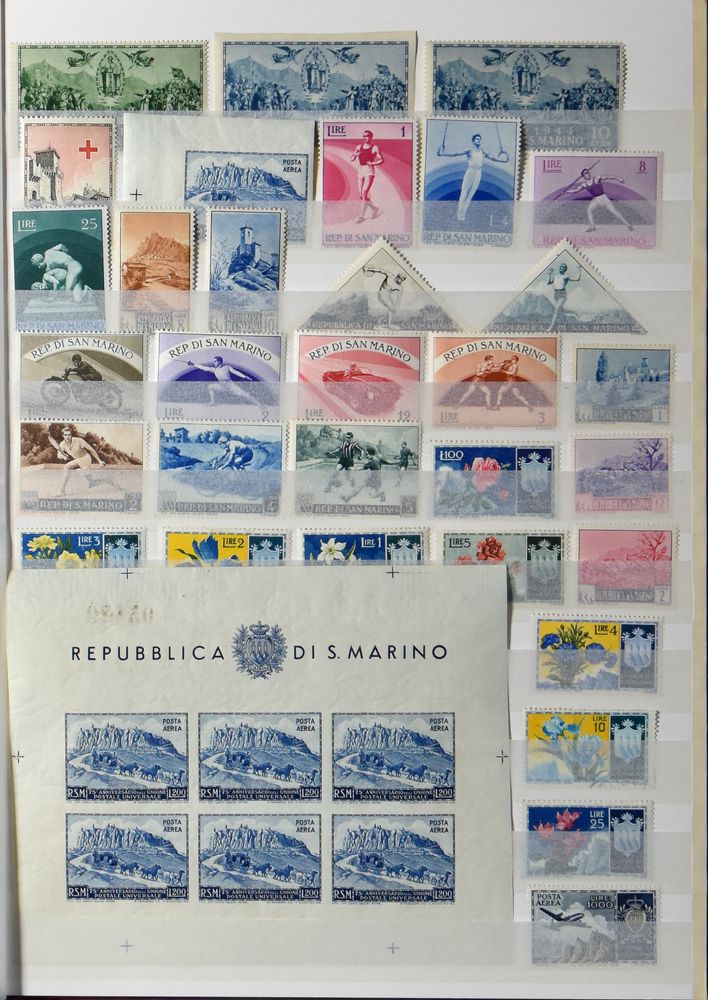 4240 nh/og/0 imageFrom States, stockbook with many better stamps, with San Marino (better stamps, souvenir sheets, penalty postage and parcel stamps), also some other countries, vf/f/to be checked.(Image 1) (Image 2) (Image 3) (Image 4) (Image 5) (Image 6) (Image 7) (Image 8) (Image 9)
