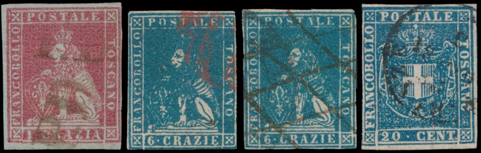 4224 0 imageN° 4, 15 (2x) and 20 "1851/60 - 1cr. deep carmine, 6cr. blue (2x) and 20c. coat of arms", all with sign Diena, vf/f (Sass. €1450)(Image 1) (All Images)