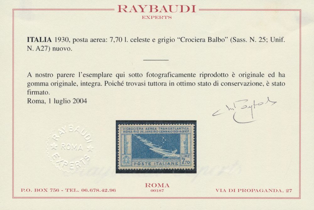 4237 nh imageLP 25 "1930 - Crociera Balbo sky blue 7L.70", certificate Raybaudi, vf (Sass. €1,100)(Image 1) (Image 2)