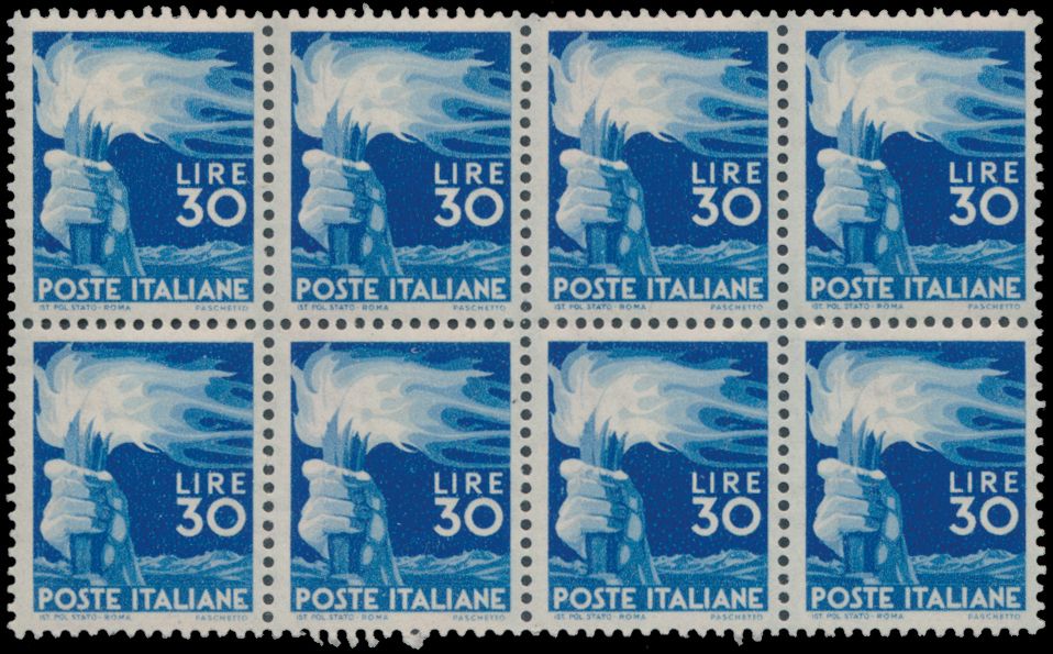 4233 nh imageN° 702A '1947 Torch 30 L blue' (Souvenir sheet of 8), vf (Mi €3,600)(Image 1) (All Images)