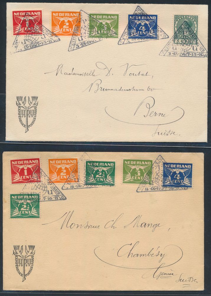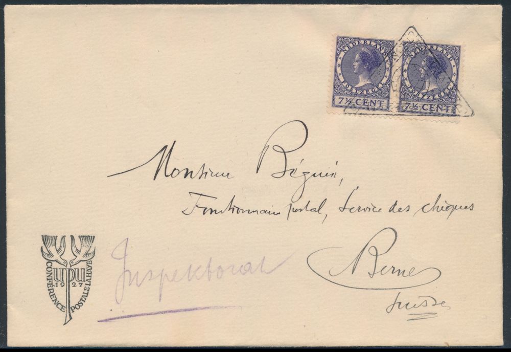 4367 image1927 Nice accumulation of 7 letters with various frankings UPU "Conference Postale La Haye", triangular cancellation, vf(Image 1) (Image 2) (Image 3) (Image 4)