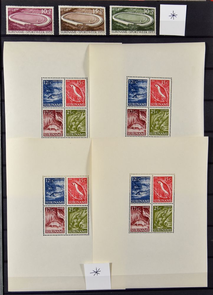 4388 nh/og/0 imageAlso Overseas Territories, accumulation better stamps in stockbook including 1950s gest. with "summer 1950" (5x), En Face 3 high values (8x), Suriname BL 1 (5x. including one **), vf (High catalogue value)(Image 1) (Image 2) (Image 3) (Image 4) (Image 5) (Image 6)